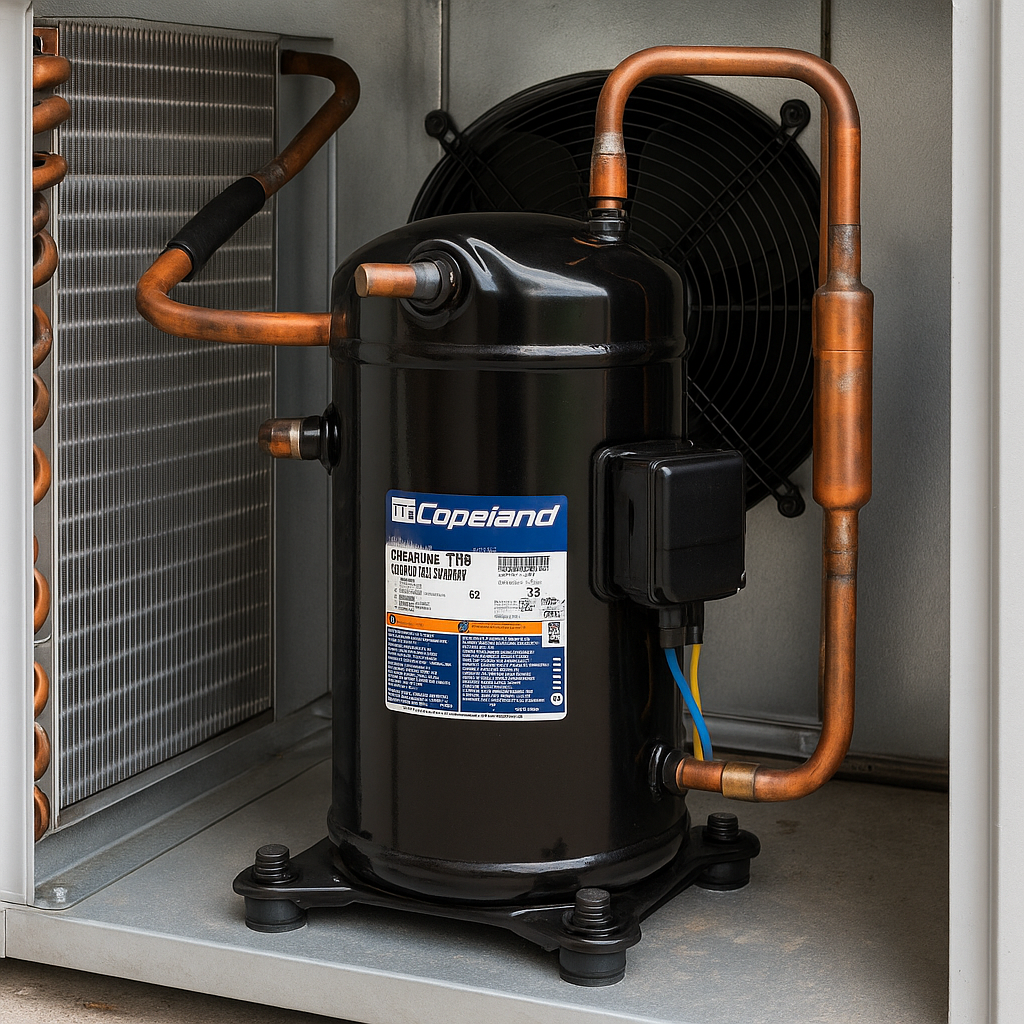 O Compressor Copeland CR42K6M-TF5 é um compressor hermético rotativo scroll de alto desempenho, projetado para sistemas de refrigeração e climatização comercial. Reconhecido pela sua confiabilidade, eficiência energética e baixo nível de ruído, é amplamente utilizado em equipamentos HVAC, como unidades condensadoras, câmaras frias, chillers e sistemas de ar-condicionado de média capacidade.